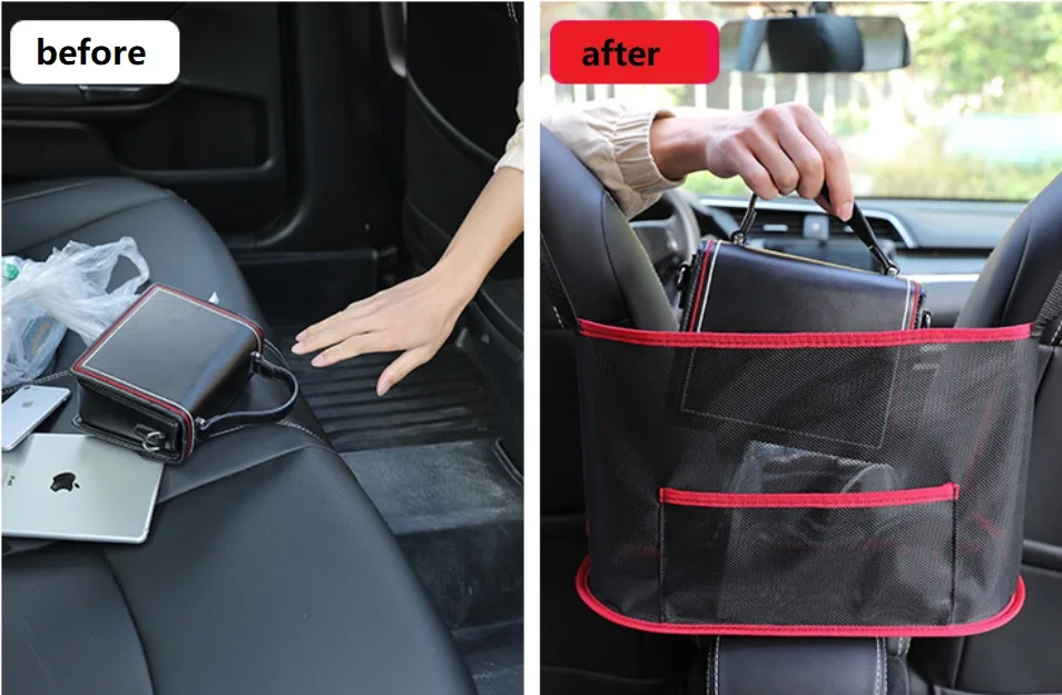 Car handbag organizer Holder Leather PU between Seats Black and Car Purse Holder Mesh and car organizer